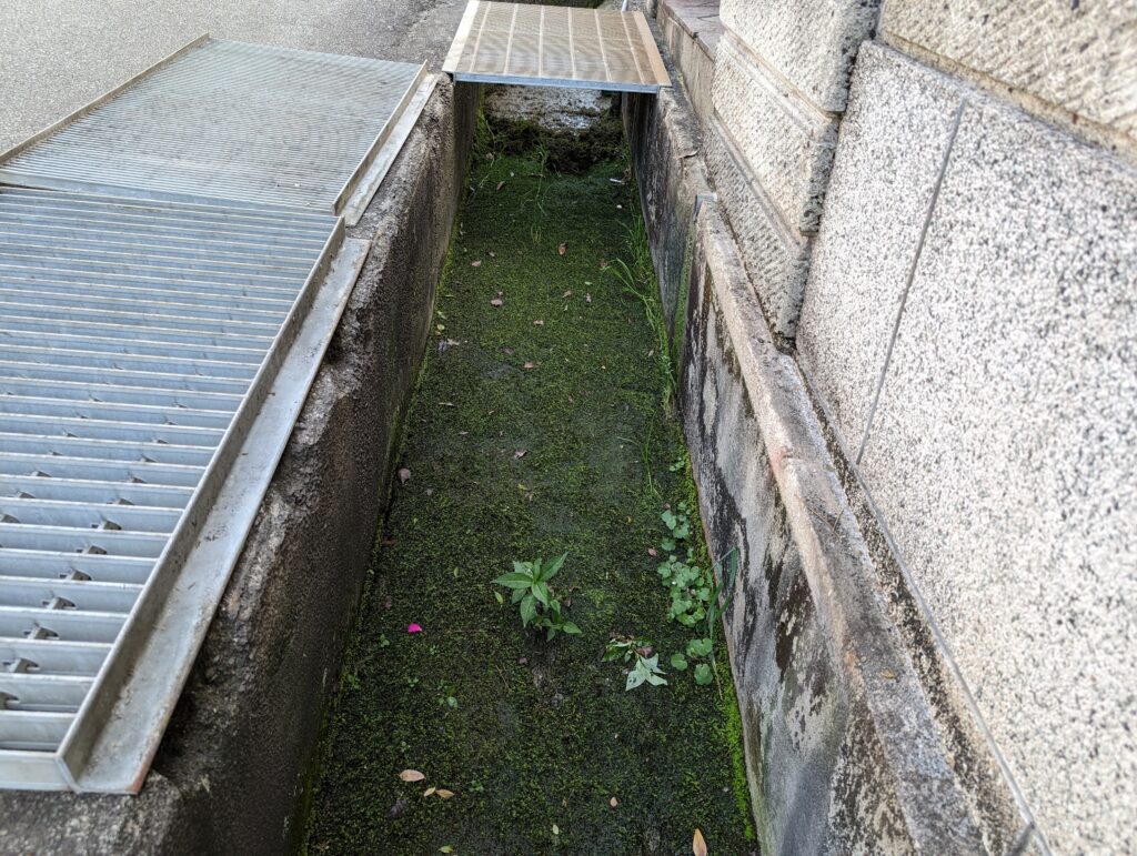 家の前の溝掃除、門扉前のグレーチングを3枚のけて